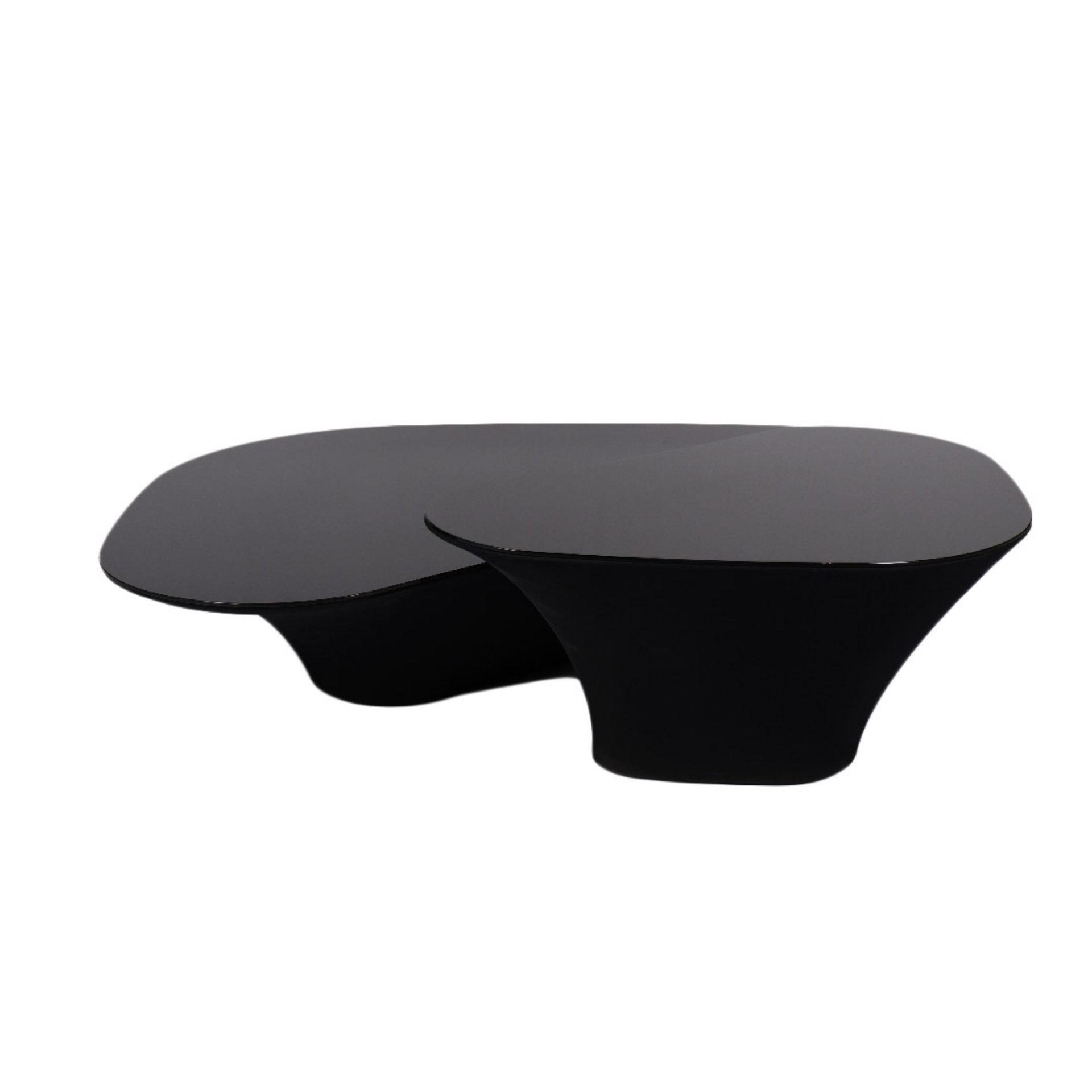 Stana Coffee Table Soft Line Stunning and unique free-form coffee table embossed in black lacquered glass top, Stana has a wonderful organic shape giving it a wonderful feel as well as its elastic fabric around its body. Details Flexible Fabric, High-gloss Lacquer, Raw MDF 146 X 90 X 30
