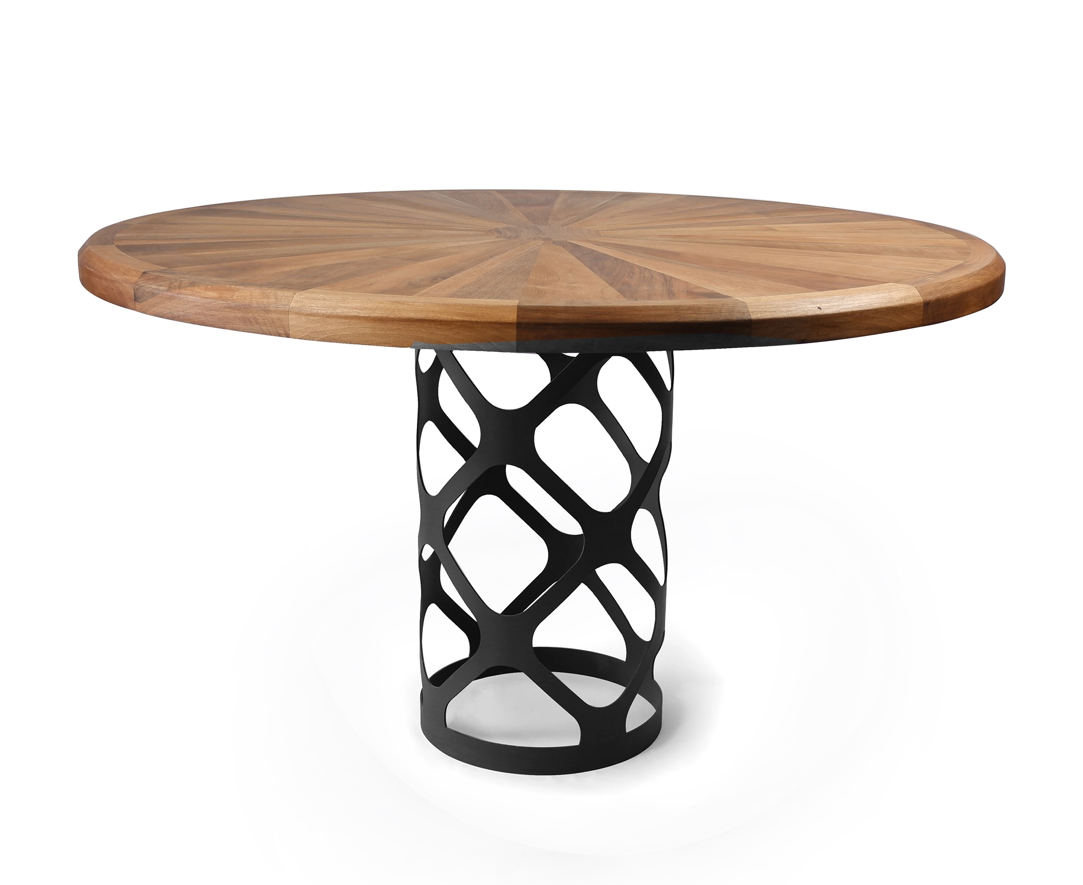 Java Dining Table With a strong visual impact and a wide comfort zone, Java is an oval table with a base of stainless steel and a unique oak top. Details Oak Top, Stainless Steel, 128 x 128 x 80